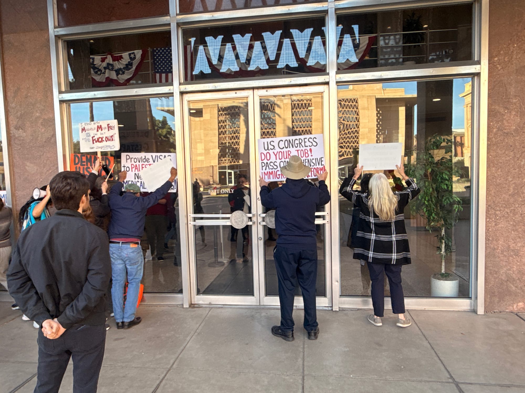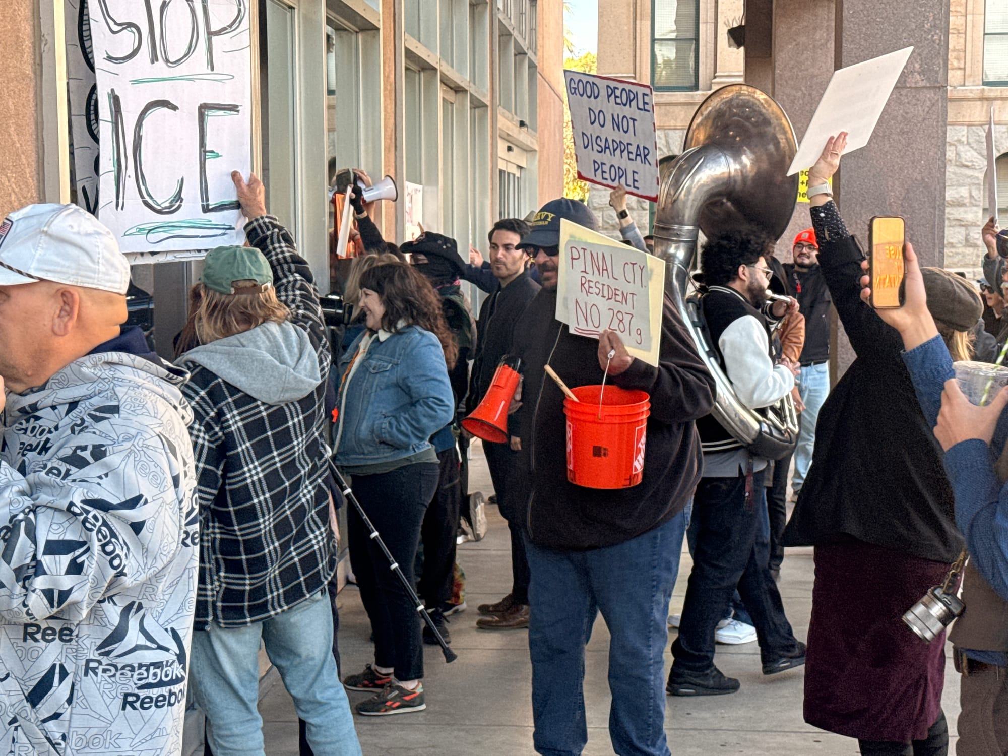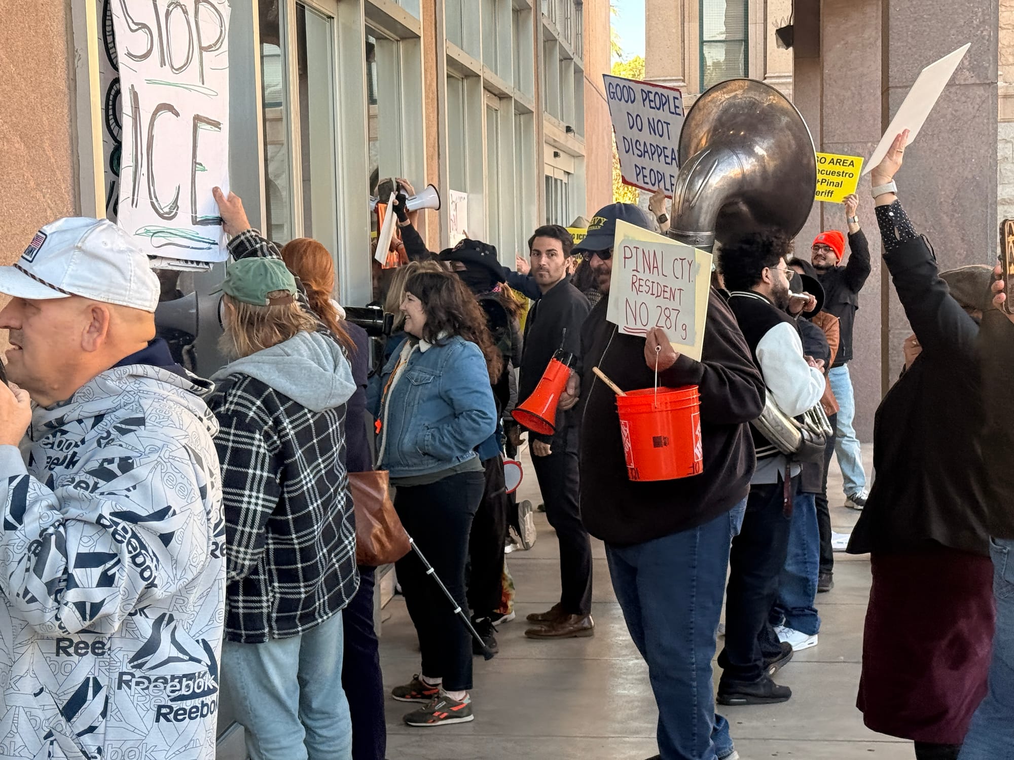 Demonstrators opposing a proposed partnership between the Pinal County Attorney’s Office and federal immigration officials drowned out a Republican press conference Monday, forcing lawmakers inside and signaling a contentious start to the legislative session.